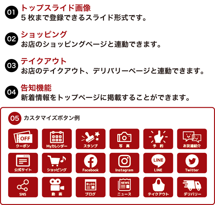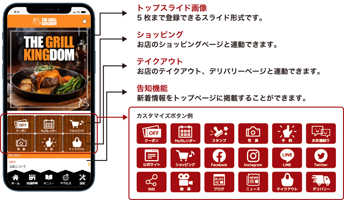 お客様とお店を繋ぐバラエティ豊富な機能を搭載したオリジナルお店アプリ作成サービスがあれば、スマホ集客に大活躍間違いなし!
